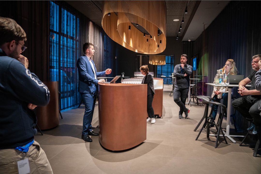 - Format: Multiplayer-Online-Convention, Kreation eines echten Messefeelings für die Teilnehmer durch Einzel- und Gruppencalls, Gamification-Elemente sowie die gemeinsame Erkundung des digitalen Messestands auf insgesamt vier Leveln